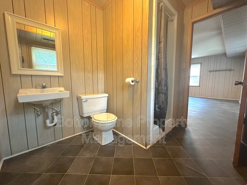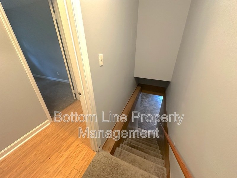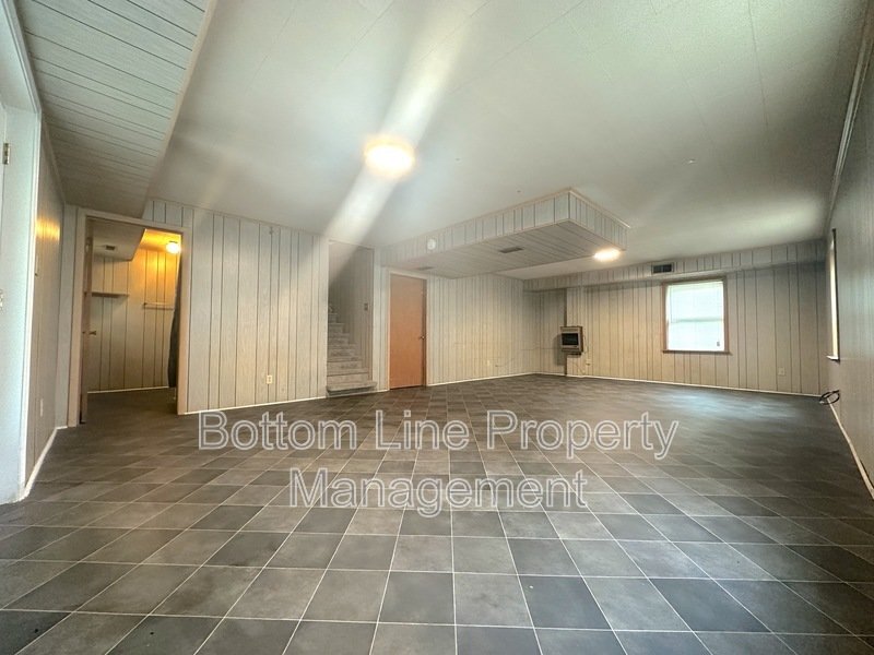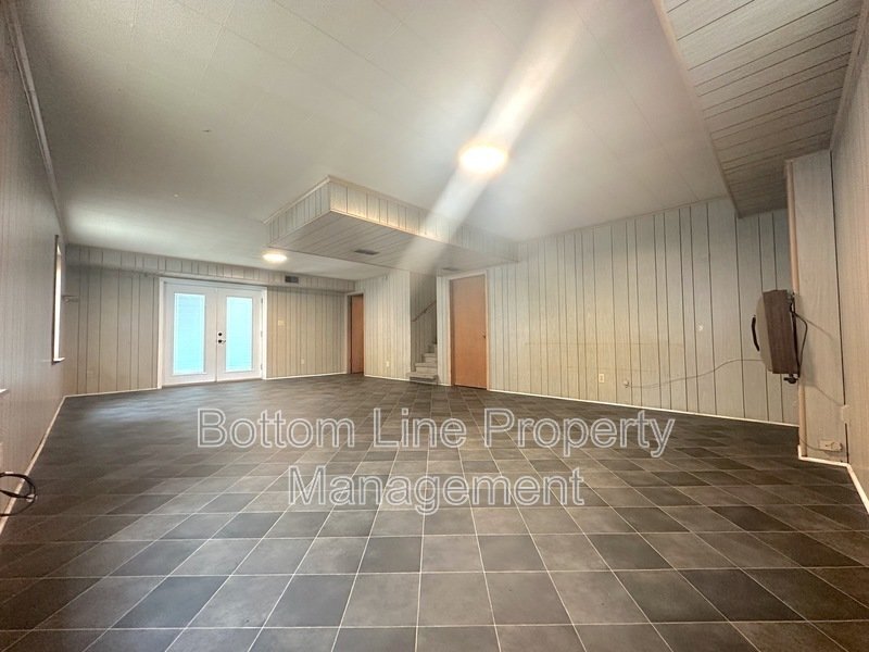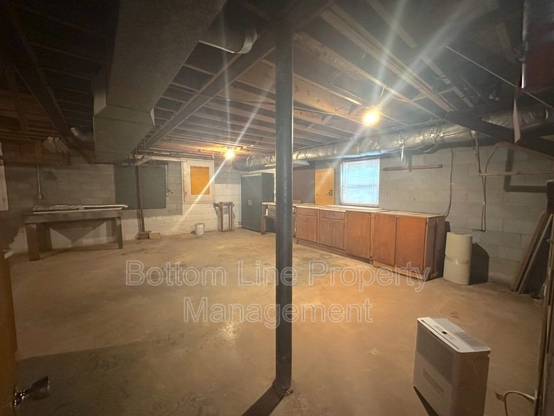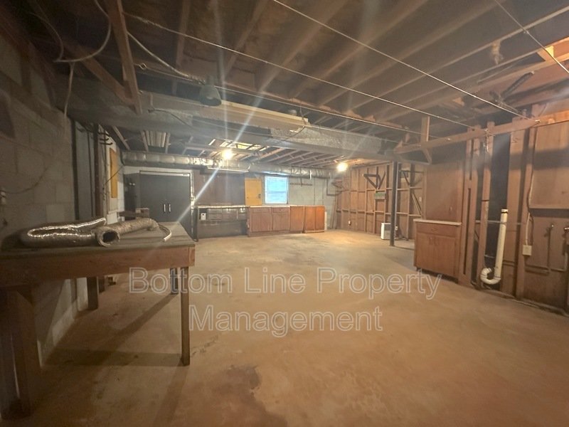 Partially finished basement complete with a bathroom, ample storage space and a back basement with a built in workbench and additional storage.