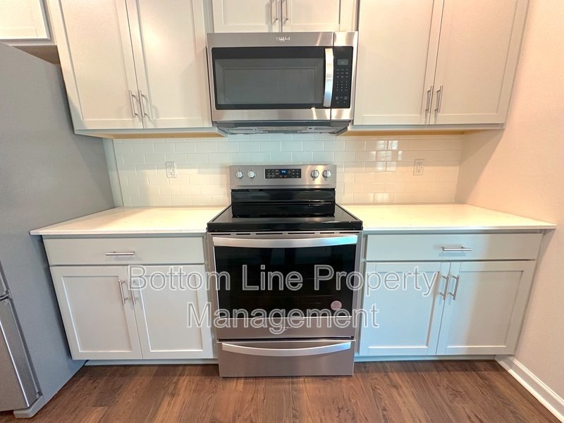 The kitchen boasts stunning countertops, stainless steel appliances, and ample cabinet space, ideal for culinary enthusiasts.