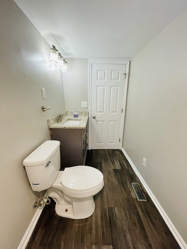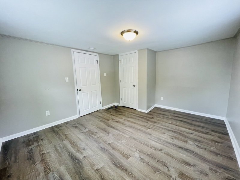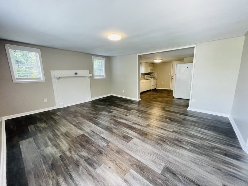 Captivating rental opportunity that offers a perfect blend of comfort and style. Boasting 2 bedrooms, 1 bathroom, and 740 square feet of well-appointed living space, this home is a haven of tranquility. As you approach, the exterior is adorned with charming siding and a welcoming grey staircase leading up to the front porch, creating a picture-perfect first impression.