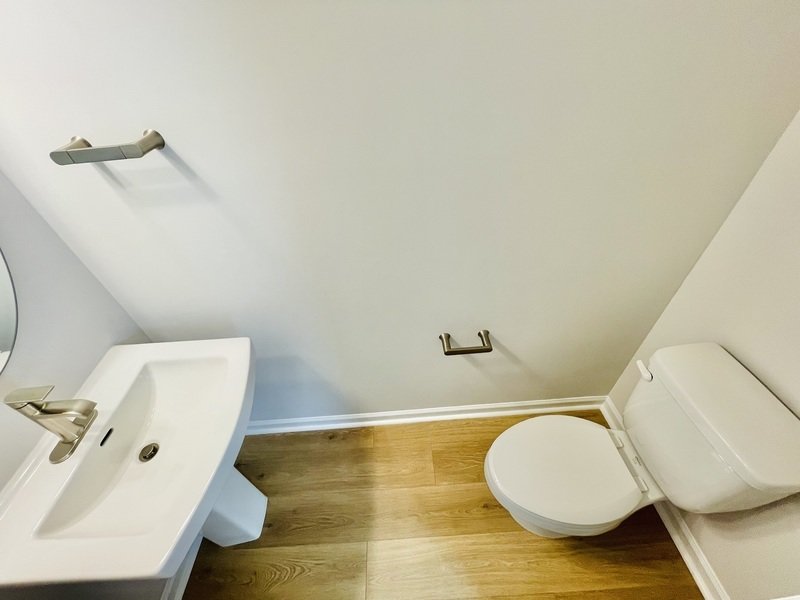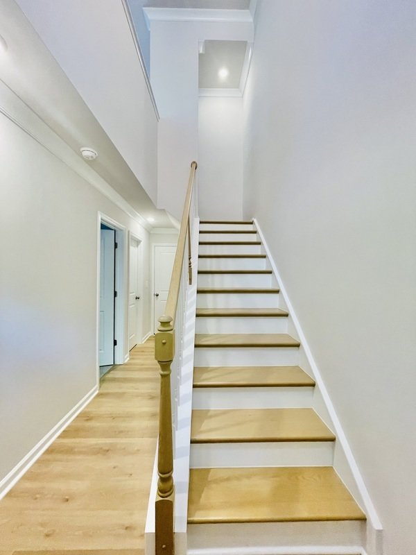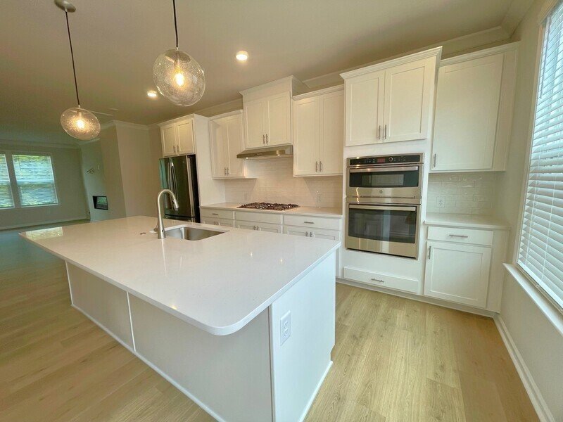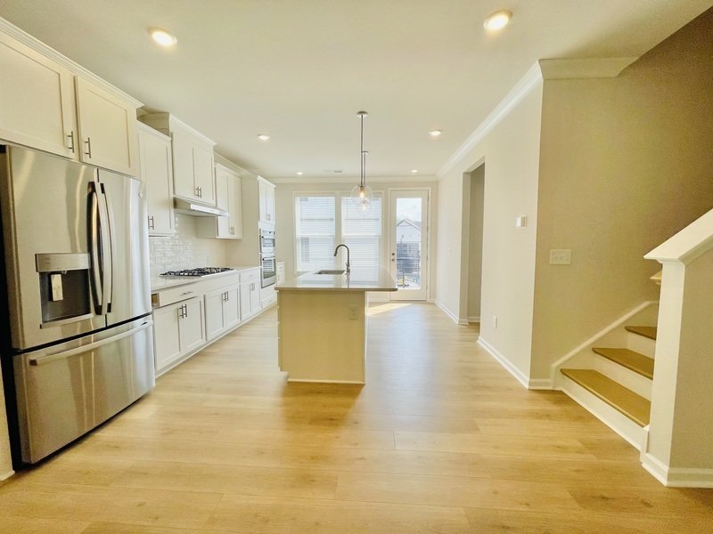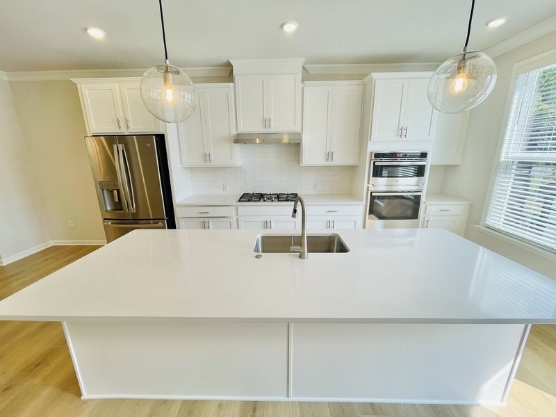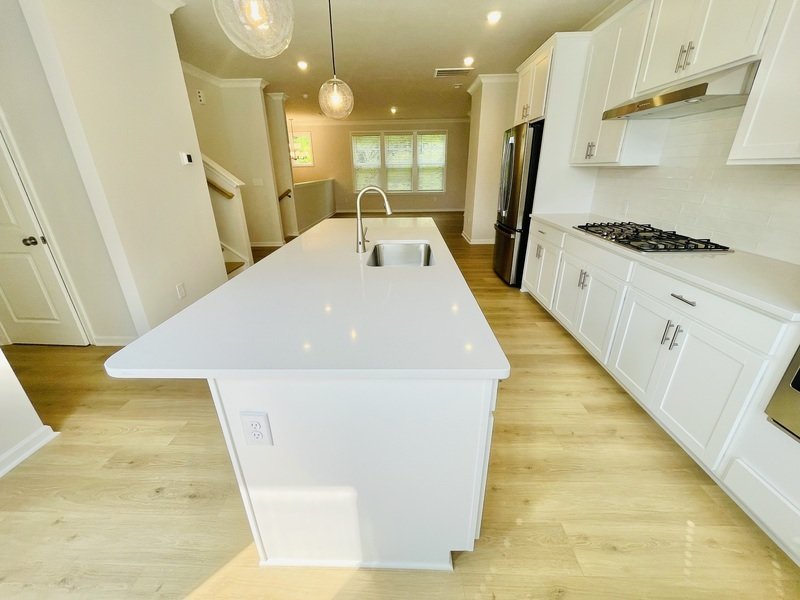 Ascending to the second floor, you will discover a beautifully designed kitchen and living room area exuding elegance and functionality. The kitchen is a culinary delight with its sleek white granite countertops, complemented by matching white cabinets and top-of-the-line stainless steel appliances, including a gas range and a real double oven. A spacious pantry adds to the convenience, while the hardwood flooring throughout adds a touch of sophistication to the space. A half bathroom on this floor ensures practicality and ease for you and your guests.