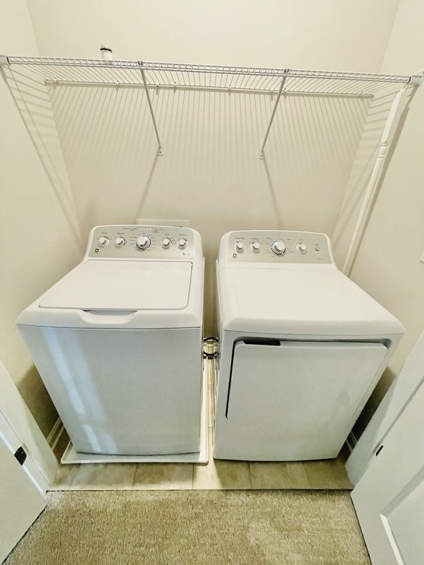 Venturing to the third floor, you will find the remaining two bedrooms, each adorned with plush beige carpeting for cozy comfort. The master bedroom boasts a stunning en-suite bath, complete with intricate tile work and a luxurious standing shower. The property comes equipped with brand new washer and dryer, eliminating the hassle of laundry days.
