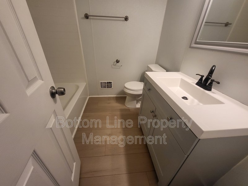 Exquisite home featuring 3 bedrooms with ample space, ideal for a cozy lifestyle. The single bathroom boasts a luxurious standing tub and pristine white countertops, offering a serene atmosphere. As you step inside, you're greeted by a spacious living room with hardwood flooring that extends throughout the entire house, creating a warm and inviting appeal.