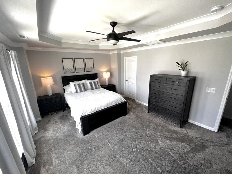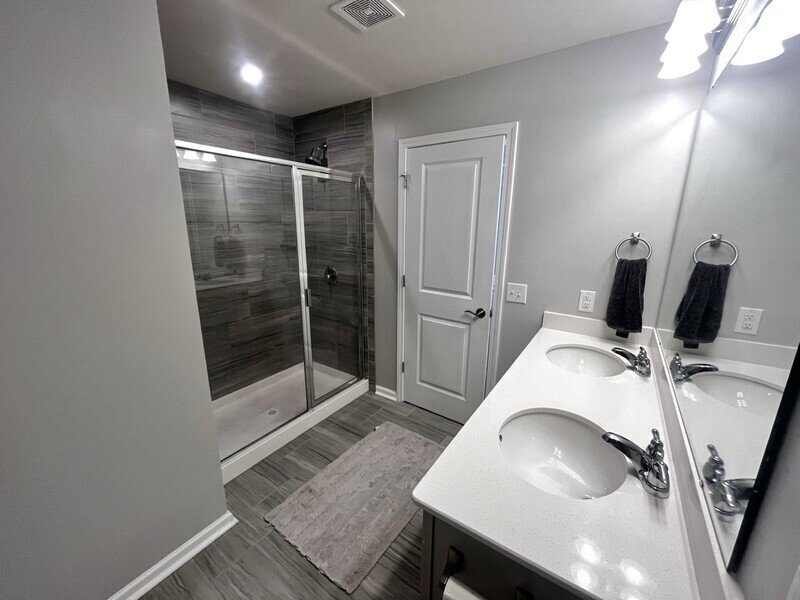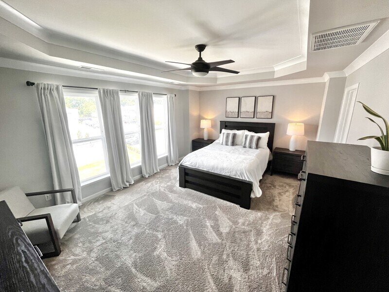 Venture up to the second floor, where you'll find cozy, beige carpeting that adds a touch of comfort to the sleeping quarters. Each bedroom offers a serene retreat, and the bathrooms are designed with luxury in mind, featuring elegant tile work, modern fixtures, and thoughtfully designed shower/tub combinations. The dual sink set-up in the master bath adds convenience for busy mornings.
