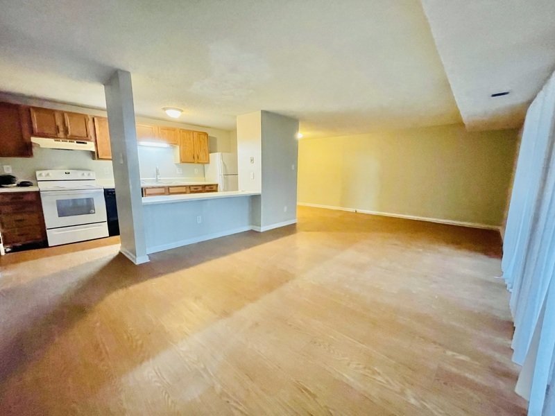 The great room is an impressive feature of this apartment, boasting a lovely bay window that lets in an abundance of natural light, creating a warm and welcoming atmosphere.