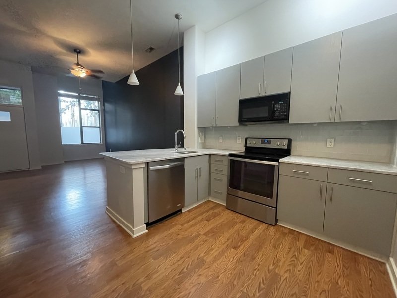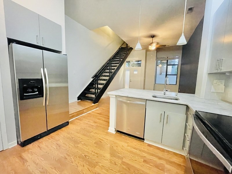 This townhouse-style apartment comes with a front door, which is a key feature of this unit. The apartment is pet-friendly and offers a charming living space that combines comfort, style, and convenience. It features one spacious bedroom and a well-appointed bathroom, creating a serene living experience.