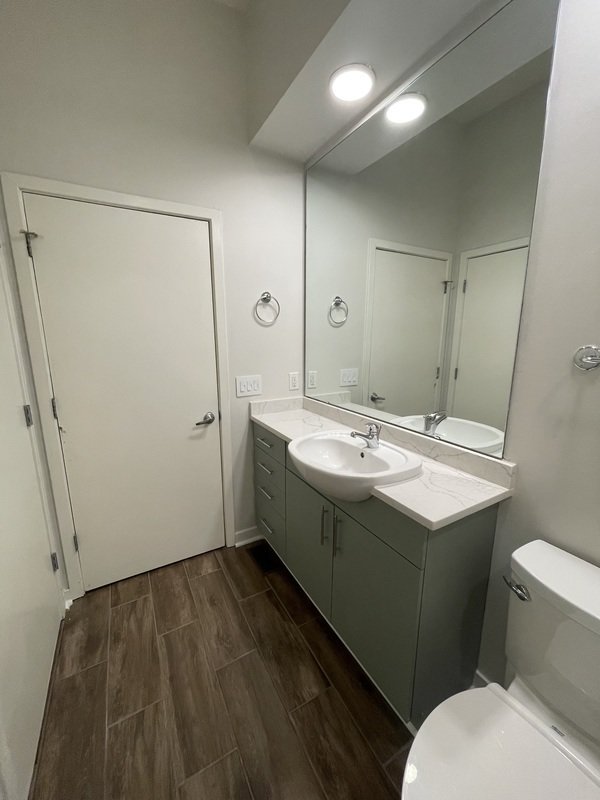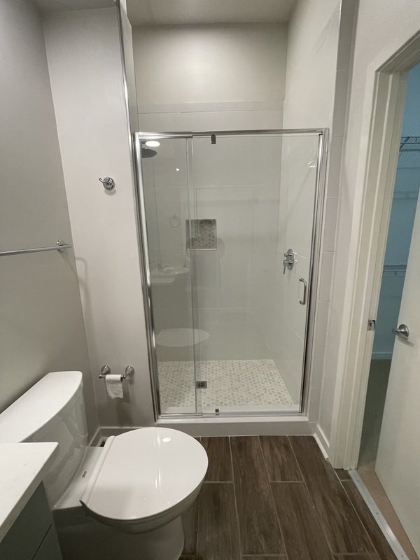 Upon entering, you'll notice the individual mailboxes for each tenant, promoting a sense of community. The unit boasts stunning hardwood flooring throughout, creating an inviting and cohesive atmosphere. The modern bathroom is located on the left upon entering and maximizes both style and functionality.