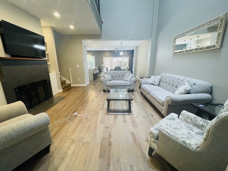 Stunning three-bedroom, two-and-a-half-bath townhouse offering a generous 2,008 square feet of living space. This beautiful home features a charming brick exterior and a private gated entrance that sets the tone for elegance. Upon entering, you'll be greeted by exquisite hardwood flooring that flows throughout the main level. The spacious living room, complete with a cozy fireplace, invites relaxation, while a convenient half bathroom is located nearby.