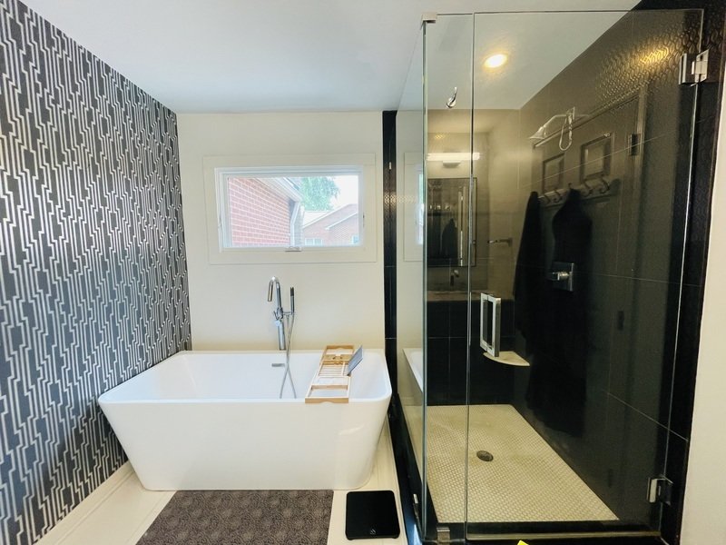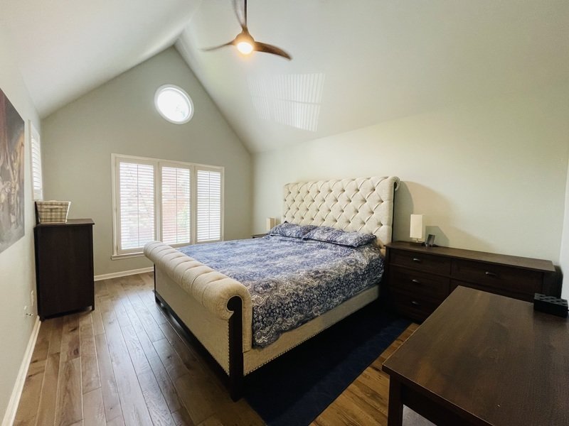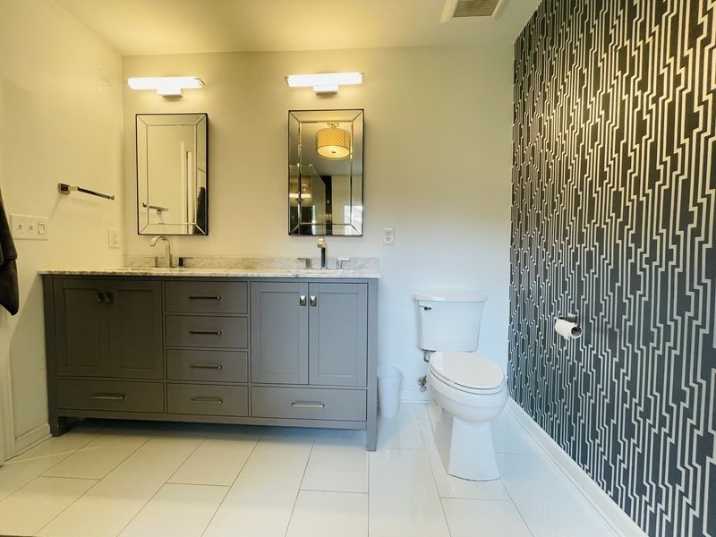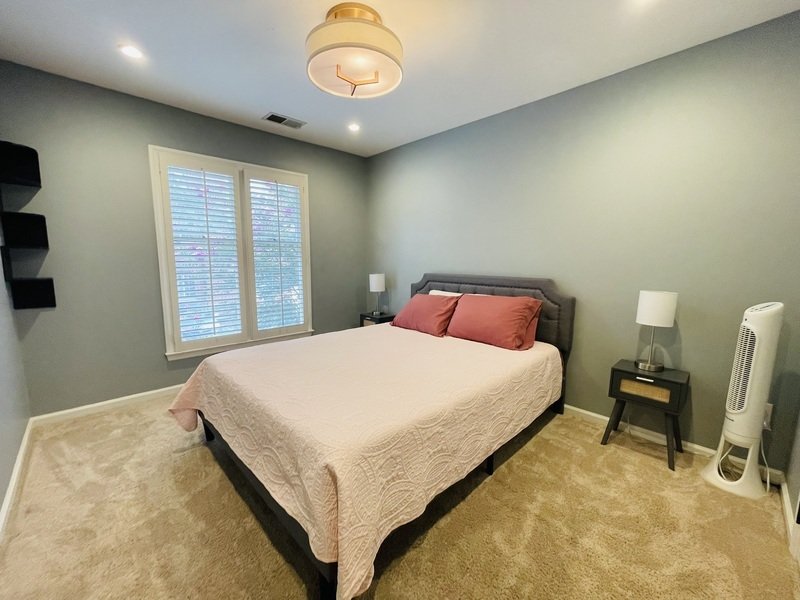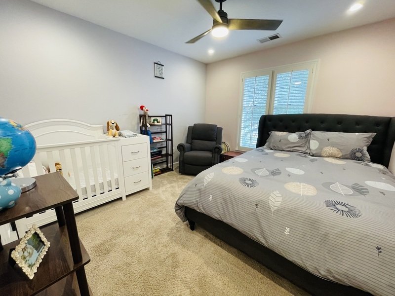As you ascend the staircase, you'll find generously sized bedrooms adorned with plush beige carpeting and walk-in closets, providing ample storage space. The bathrooms are beautifully designed with elegant tile work, featuring a standard shower and a luxurious tub, dual sinks, and an impressive guest bathroom with a standalone shower and tub combination.