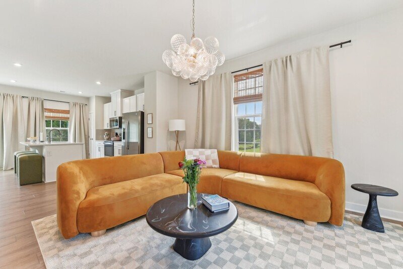 Beautifully designed rental property that epitomizes modern living with its spacious layout and charming features. This delightful home boasts 3 bedrooms and 2.5 bathrooms, encompassing an impressive 1,691 square feet of living space. As you approach the property, you are greeted by a striking gray siding exterior complemented by elegant brick accents, along with a long driveway leading to a one-car garage—providing both convenience and curb appeal.