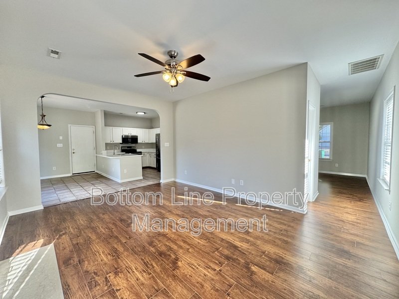 Welcome to 11740 Hawick Valley Ln, where charm meets modern living! As you approach this stunning home, you are greeted by its inviting beige siding and a spacious two-car garage, perfectly complementing the elegant black window panes and front door. Step inside, and to your right, you'll discover a generous dining room, ideal for hosting gatherings. To the left, a beautifully appointed half bathroom showcases exquisite tilework, adding a touch of sophistication to the main level. The heart of the home is the expansive living room, bathed in natural light, creating a warm and welcoming atmosphere. Straight ahead from the dining room, the cozy kitchen awaits, featuring sleek countertops and top-of-the-line stainless steel appliances, all accented by tasteful tilework that enhances its appeal.