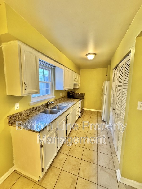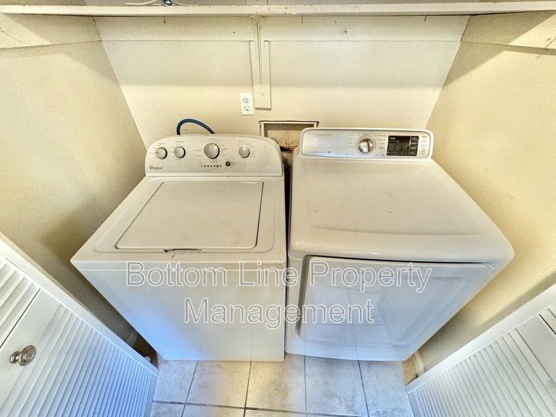 Continuing straight from the living room, the well-appointed kitchen awaits, showcasing beautiful tile work and an array of modern amenities. The kitchen features stunning granite countertops paired with crisp white cabinets, creating a fresh and inviting atmosphere. Equipped with quality appliances, this kitchen is perfect for culinary enthusiasts. Please note that while the washer and dryer are included, they are not maintained by the property management.