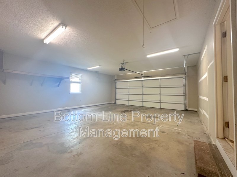 Attached oversized 2-car garage with built-in shelving