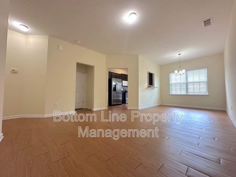 The main level features LVP flooring, recessed lighting, neutral walls, and a seamless flow between living and dining areas.