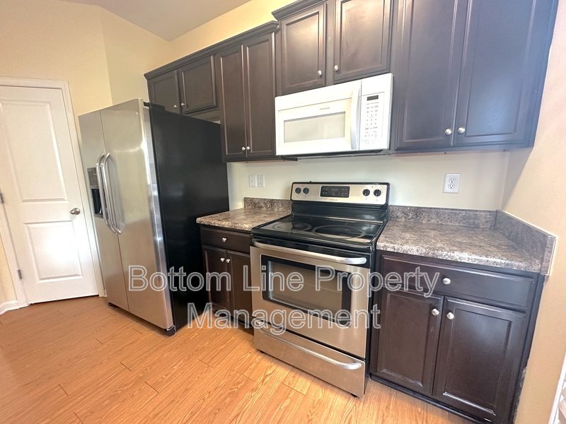 Enjoy a full appliance suite, including fridge, electric range/oven, dishwasher, and microwave. Granite countertops, center island, ample cabinetry, and pantry storage complete the space.