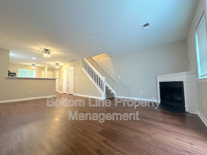 ✨ Bright open living room with modern fixtures and a cozy fireplace