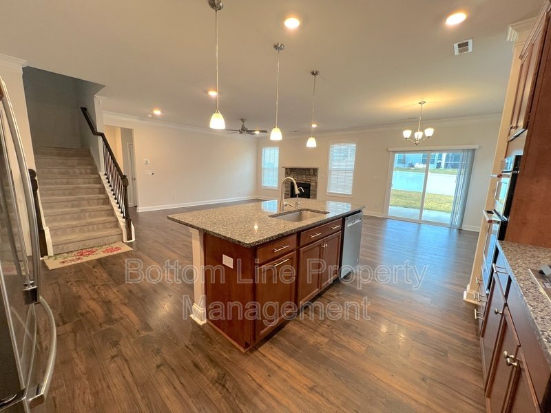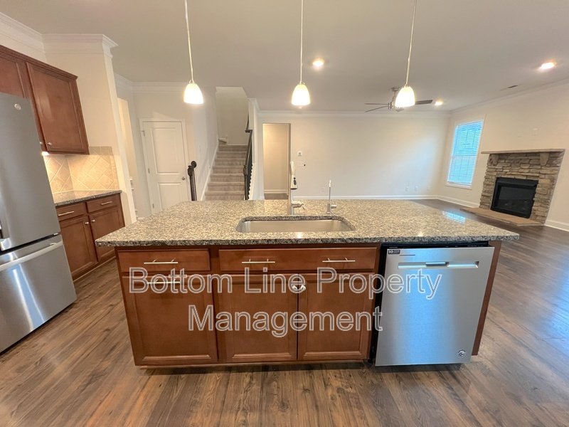 • Inviting living room with custom gas fireplace creating a warm focal point