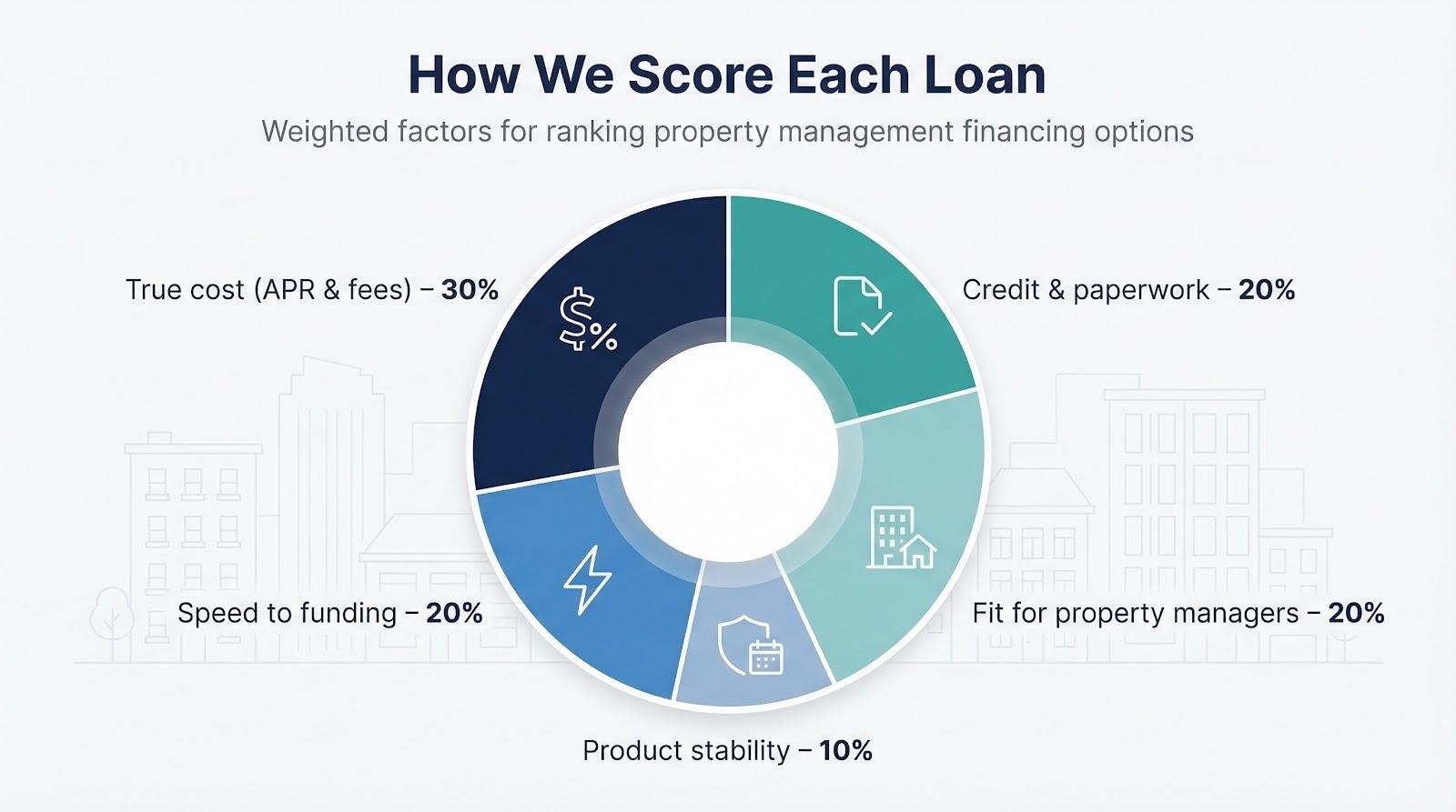 We weighted those questions 30-20-20-20-10 percent in that order, then converted raw data (APR ranges, approval rates, average days to funding) into a 100-point score.