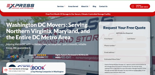 Express Moving and Storage leads with a full range of services, including specialized handling, binding estimates, and climate-controlled storage. It works well for moves that need extra care and coordination.