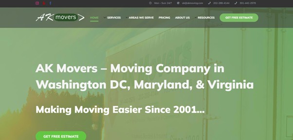 AK Movers is a family-owned moving company operating since 2001 with over 20 years of experience in the Washington, DC metropolitan area. The company maintains three office locations across DC, Rockville, and Potomac, Maryland, providing local and long-distance moving services. AK Movers operates as a licensed and insured mover with USDOT Number 1073915 and MC/ICC Number 914468, offering 24/7 availability for residential and commercial relocations.