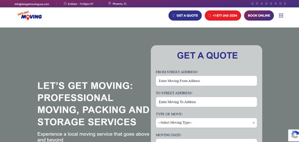 Let's Get Moving | Background-checked crews with a GPS-tracked fleet and property damage coverage | Fully licensed and insured with property damage coverage for all moves | 4.9/5 (22 reviews) |